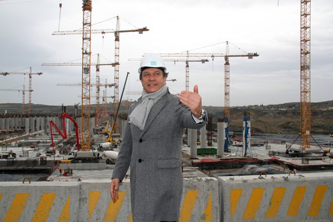 Yusuf Akçayoğlu, havalimanı inşaatında 12 bin kişinin çalıştığını belirterek, “Sahada halen bin 704 kamyon, 182 ekskavator, 50 greyder, 121 silindir, 84 dozer ile birlikte mimar, mühendis, idari ve işçi olarak toplam 12 bin kişi çalışıyor. Bazı işçilerimiz özellikle kamyon şoförleri yabancı. Mesela 300 Vietnamlı, 300 Pakistanlı şoför var. Terminale 7 giriş olacak. THY’nin isteğine göre yüzde 75’i THY hizmetine sunulacak. Anca bu rakam kesin değil. İçeride oteller, kafeler, CİP salonları hizmet verecek. Genel havacılık ikinci bölümden sonra yapılacak. Teknik olarak Habom’dan daha büyük bir bölge yapılacak. Uçakların slot sıkıntısı olmayacak, denizden de lojistik ikmal yapılacak. Duty Free ihalesini ünlü Alman firması Heınemann kazandı. Onlar bir Almanya’daki merkezlerini buraya almayı düşünüyorlar” dedi.