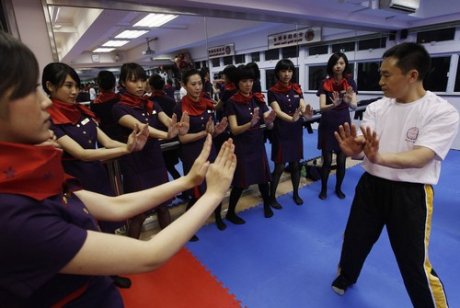 Hong Kong havayolu şirketi Hong Kong Airlines tüm kabin personelini uzakdoğu dövüş sporlarından Kung fu kurslarına gönderiyor.