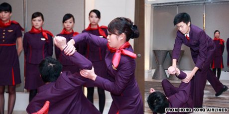 Artık Hong Kong Hava Yolları ile yolculuk eden, ancak uçakta kavga çıkaran ve diğer yolcuları rahatsız eden sarhoş yolcuların hakkından hostesler bundan böyle kung fu ile gelecek.