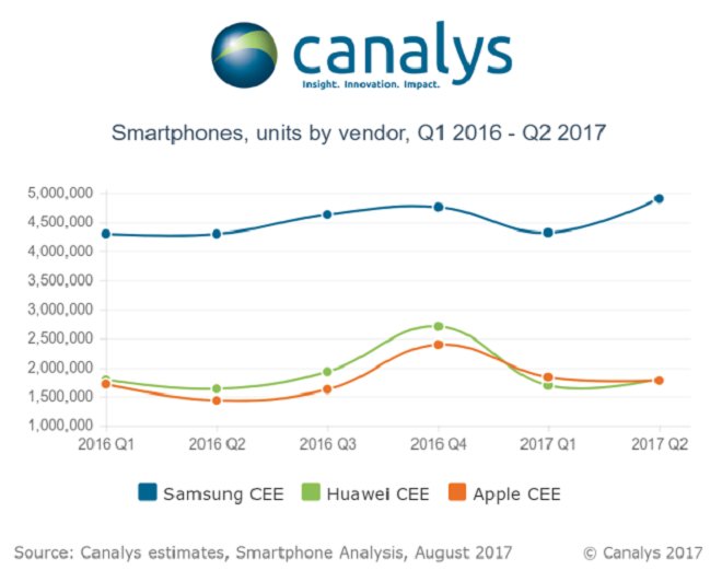 Orta ve Doğu Avrupa’nın satış verilerine göre Huawei yükselirken Apple düşüş yaşadı. Xiaomi ise istikrarlı bir şekilde yükselmeye devam ediyor. Satış rakamlarında “ezici” bir farkla birinci olan Samsung’un arkasından sırayla Huawei ve Apple geliyor.