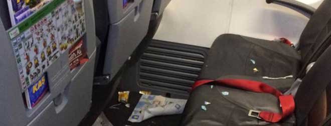 Uçaktaki bazı yolcuların tükettikleri içeceklerin boş kutularını, uçakta bulunan dergi ve bilgilendirici kağıtları ve kullanılan ıslak mendil kağıtlarını oturdukları koltuklara ve yerlere atarak uçaktan ayrılmaları sosyal medyada günün konusu oldu.