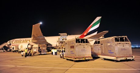 Kraliçe Elisabeth’in tahta çıkışının 60’ıncı yıldönümü adına Windsor kalesinde düzenlenen 60. Yıl Geçit Töreni için hazırlanan Umman Kraliyet Süvari atları, Boeing 777 kargo uçağıyla Umman Muscat’tan Londra Stansted’e taşındı. Atlar, bu önemli seyahat esnasında veterinerlik uzmanlarına danışılarak geliştirilen IATA sertifikalı at bölmelerine yerleştirildi. Emirates SkyCargo uçaklarının içinde sürekli olarak ayarlanabilen ve atların rahat etmesini sağlayan hassas havalandırma sistemi bulunuyor. 8 seyis ve veteriner hekimden oluşan bir ekip de uçuş esnasında atlara eşlik etti.