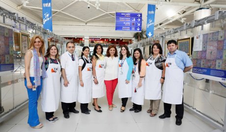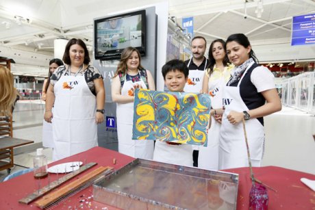 Etkinliğin ilk gününde Türkiye’nin önde gelen ustalarından olan TAV Atölye eğitmeni Eda Özbekkangay ve atölye katılımcıları yolcular için canlı olarak ebru yaptı.