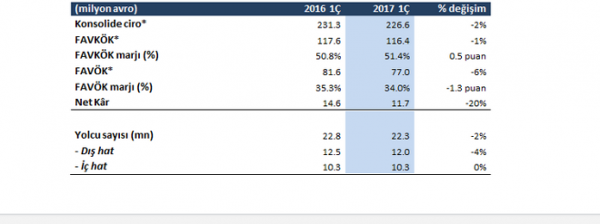 İstanbul Atatürk Havalimanı’nda yaptığımız yatırımlar kaynaklı amortisman ve TL’nin değer kaybından kaynaklanan ertelenmiş vergi gideri nedeniyle, mevsimsel olarak da zayıf seyreden ilk çeyrek net karımız geriledi. Buna rağmen, 2017 yılı için net karda önemli artış beklentimizi koruyoruz. Mart ayında yüzde 50 kar dağıtımı politikamız çerçevesinde 247 milyon TL temettü dağıttık. Birinci çeyrekte Suudi Arabistan Sivil Havacılık Otoritesi ile Yanbu, Qassim ve Hail havalimanları için anlaştık. Medine havalimanındaki başarımızı bu havalimanlarında da tekrarlamak istiyoruz.