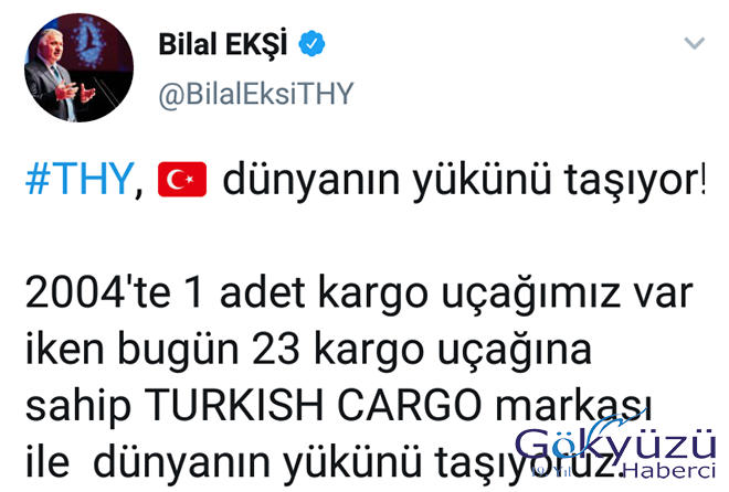 THY Genel Müdürü Bilal Ekşi, sosyal medya hesabından kargo uçağı sayısındaki artışı duyurdu.