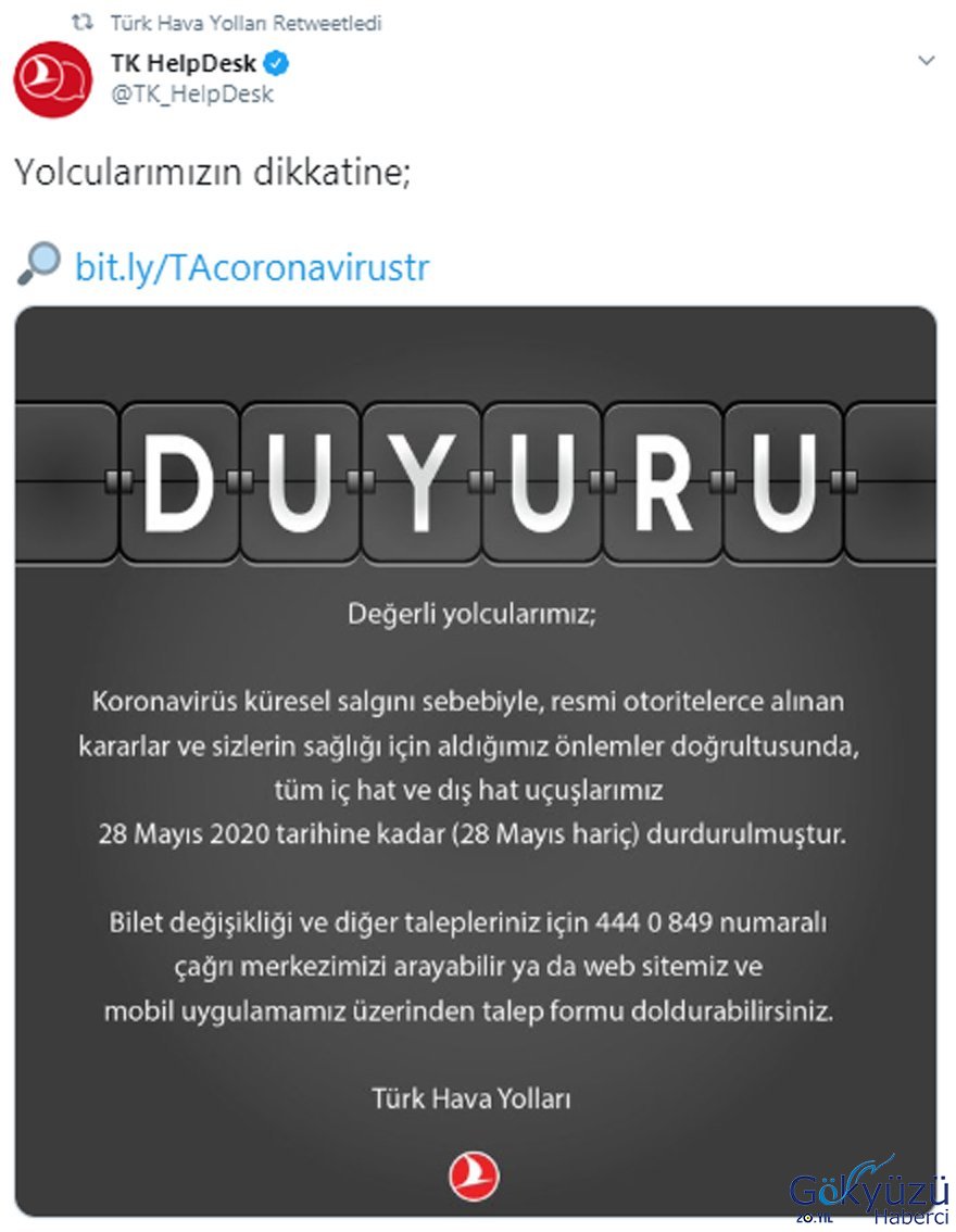 #THY’nin uçuşları 28 Mayıs’a kadar durduruldu!